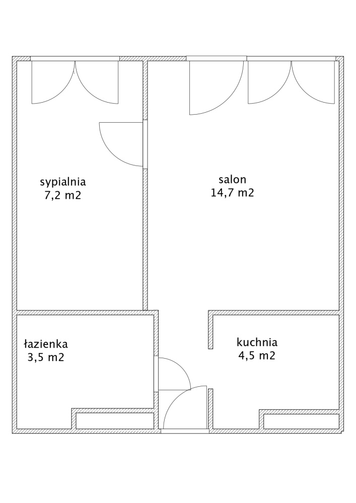 Salon, sypialnia, łazienka z wanną, oddzielna kuchnia (istnieje możliwość połączenia z salonem) oraz niewielki balkon. Piękne, drewniane podłogi (po renowacji).