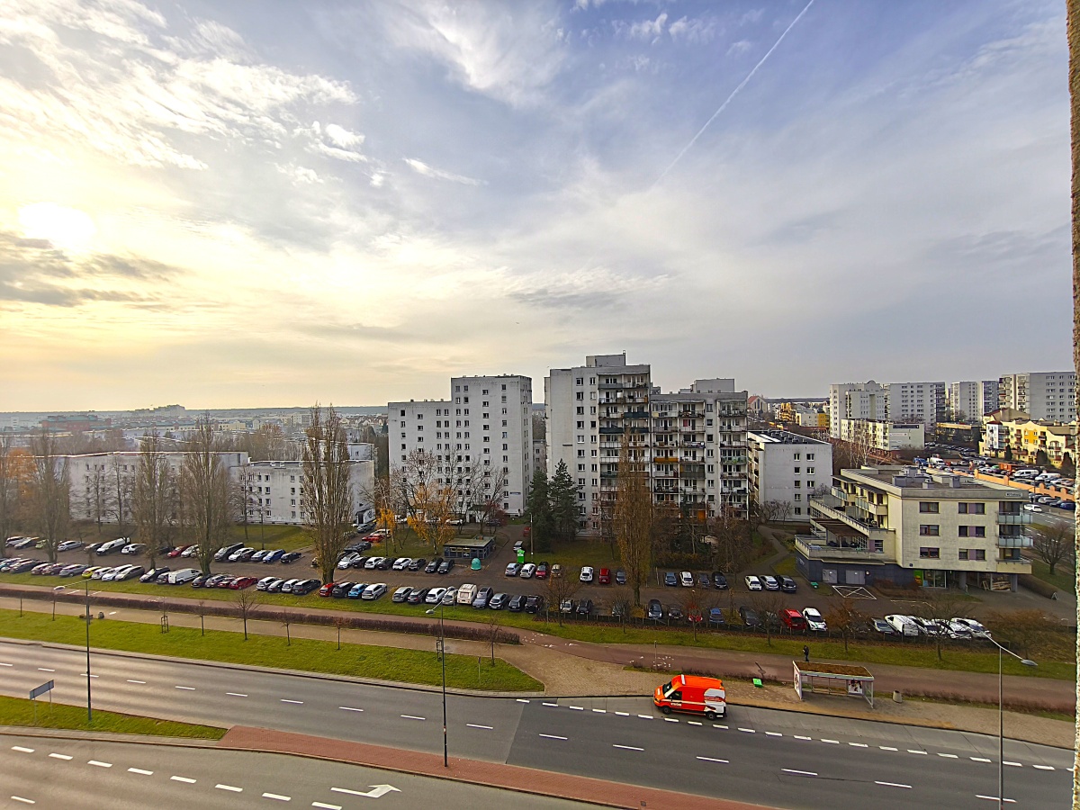 Mieszkanie znajduje się na 7 piętrze, a balkon jest zabudowany dzięki czemu w mieszkaniu jest bardzo cicho.