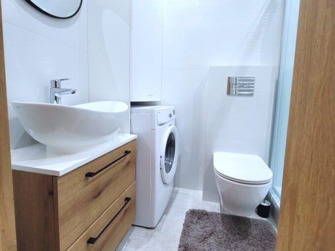 Dostęp do drugiej łazienki z nową pralką, odkurzacz, przybory do sprzątania