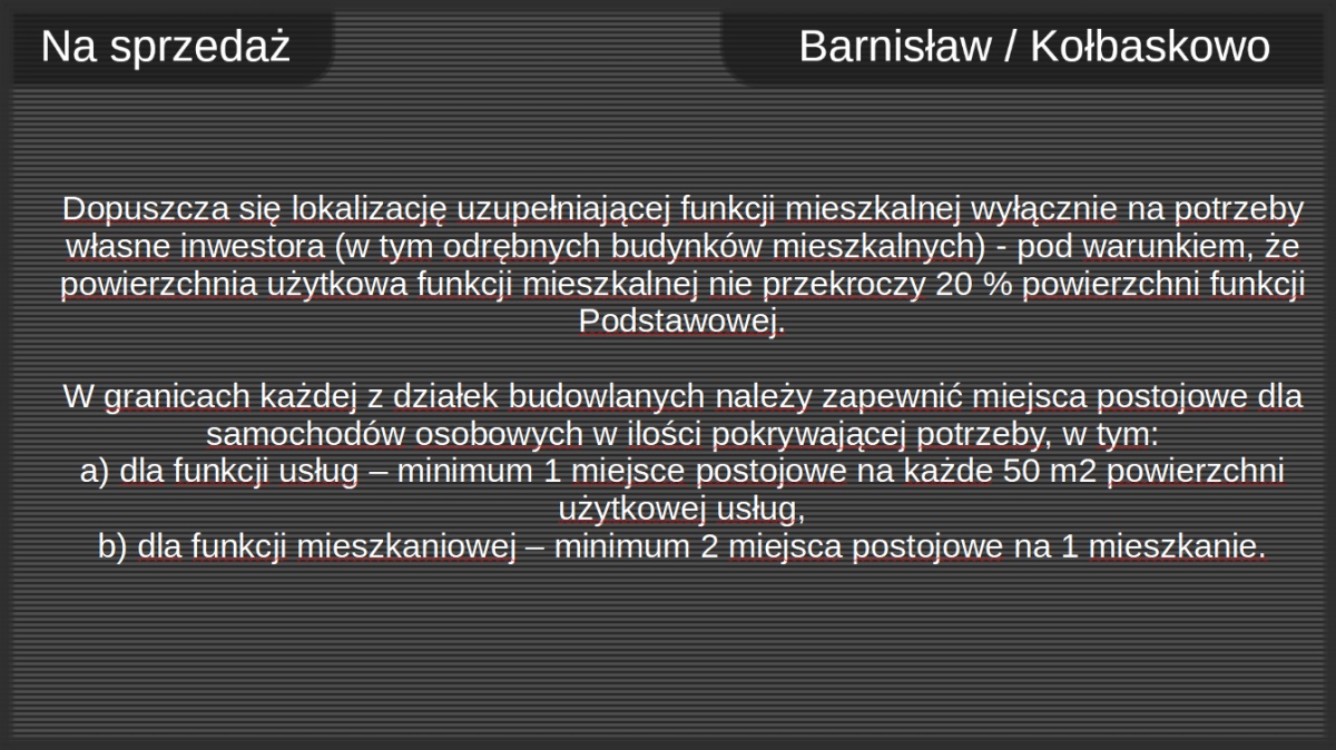 b) dla funkcji mieszkaniowej – minimum 2 miejsca postojowe na 1 mieszkanie.