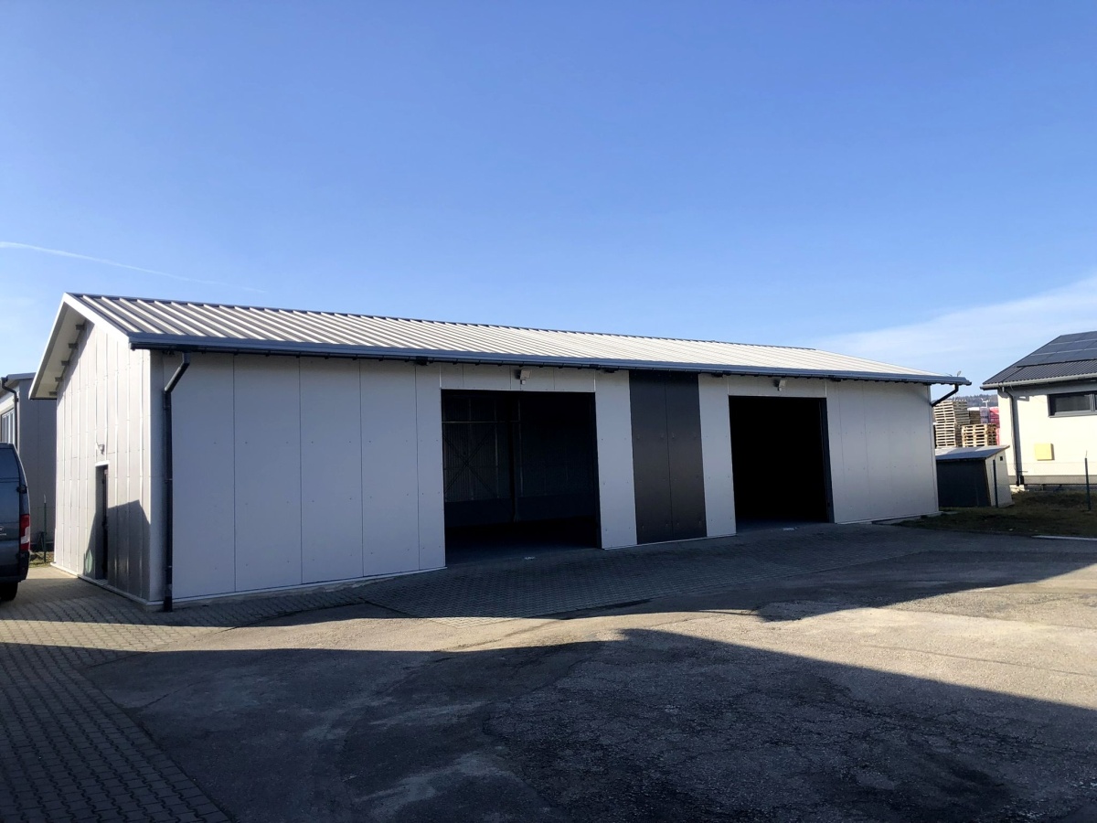 – budynek wyposażony w 5 dużych bram marki „Wiśniowski” (450cm × 400 cm),