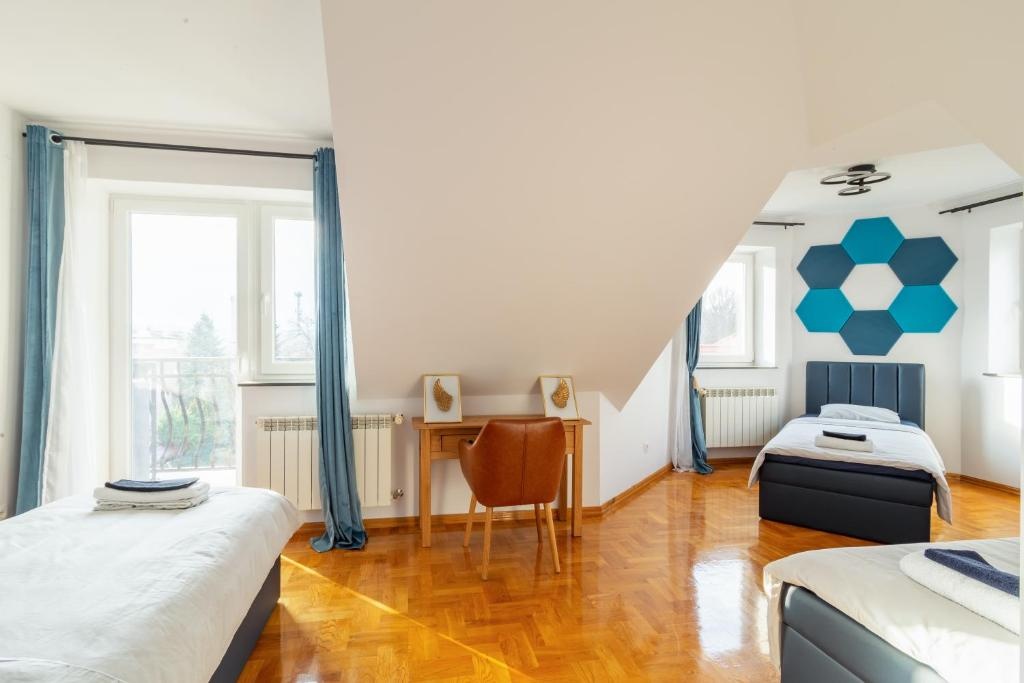 14 niezależnych pokoi, każdy z prywatną łazienką – idealne pod wynajem krótko- lub długoterminowy.