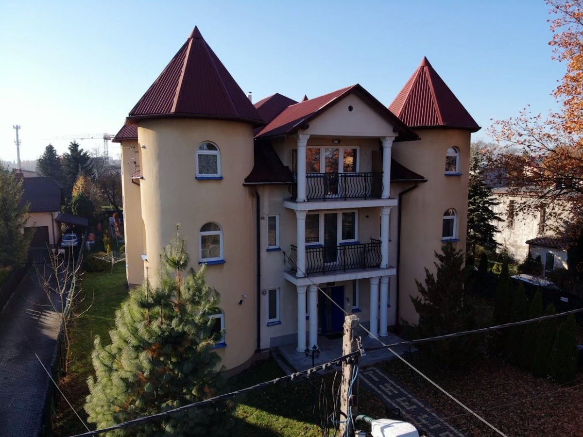 Powierzchnia użytkowa: 492 m² – trzy kondygnacje funkcjonalnie zaprojektowane pod działalność noclegową lub mieszkalną.