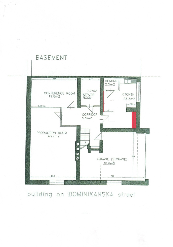 18 pokoi, serwerownia, 3 łazienki, duża kuchnia.
