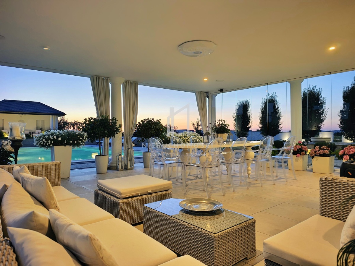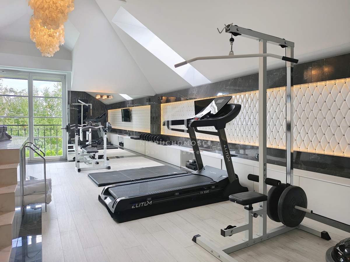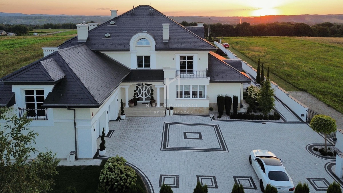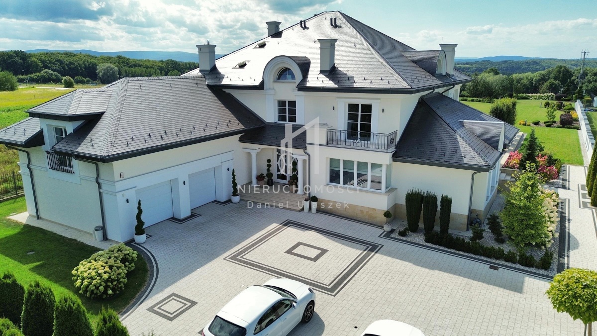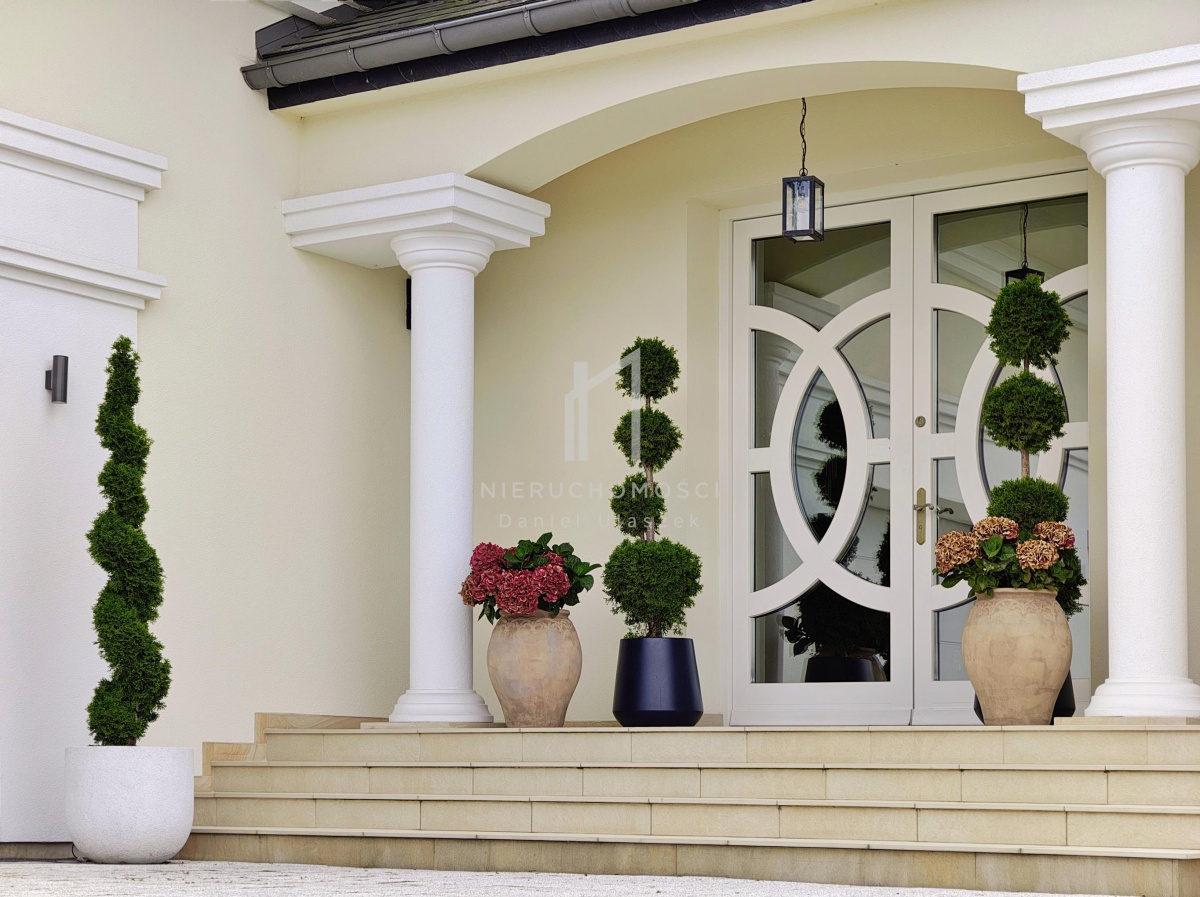 Okazała willa o powierzchni zabudowy 499 m² położona jest na działce liczącej 3382 m² (~34 arów), posesja otoczona pięknie zagospodarowanym ogrodem. Całość dopełnia reprezentacyjny, panoramiczny taras wraz z basenem o powierzchni ok. 236m² i pawilonem odpoczynkowym. Dom oferując nowoczesne rozwiązania technologiczne oraz luksusowe wykończenia z najwyższej jakości materiałów sprowadzonych głównie z Włoch i Niemiec.