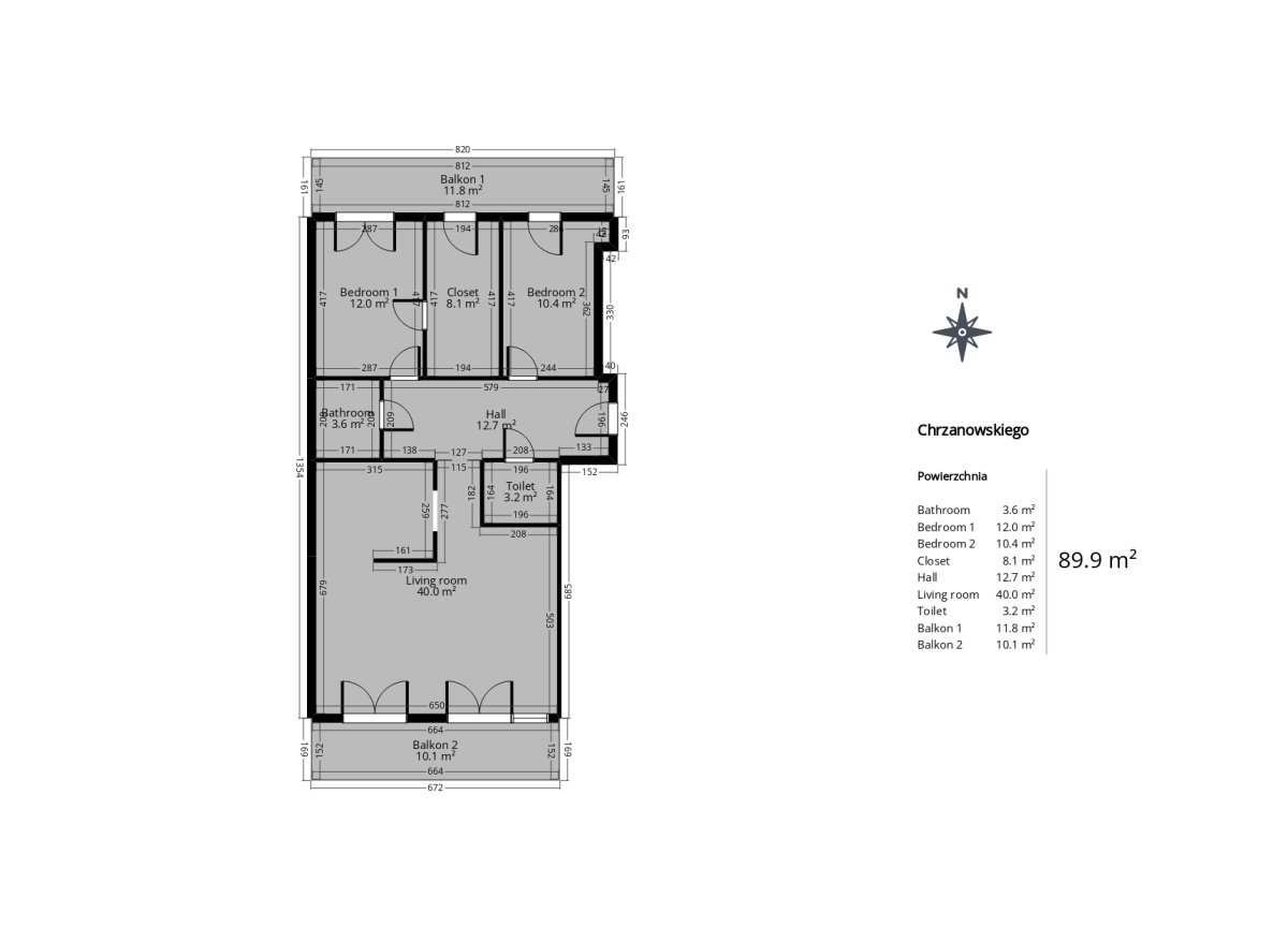 -dwa duże balkony – każdy ok. 10 m²,