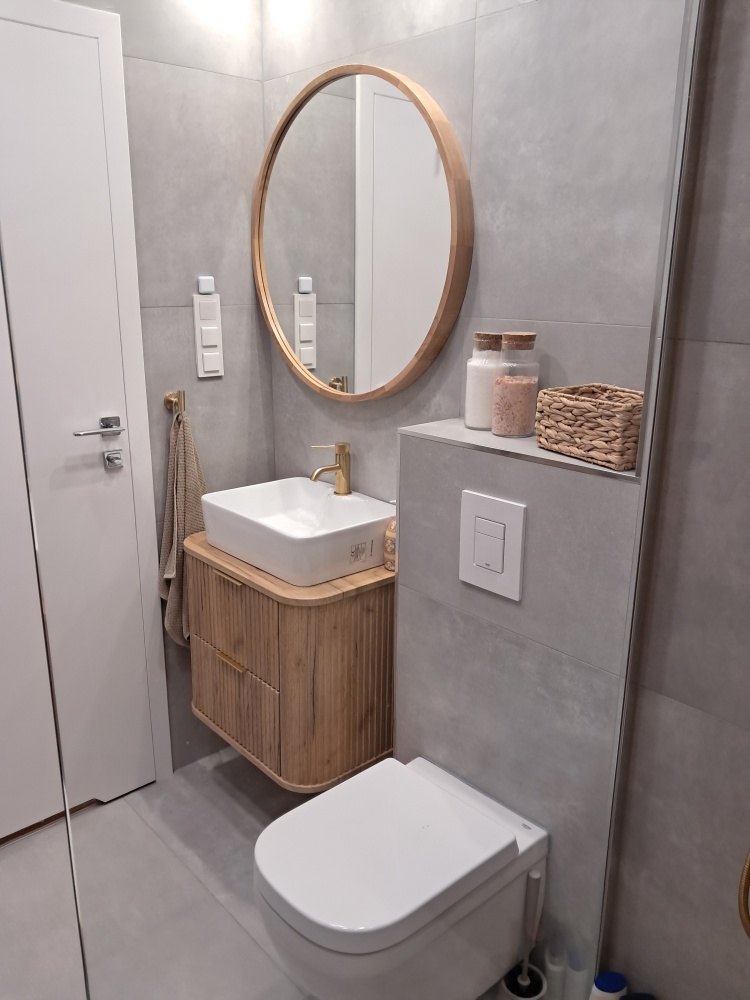 Korytarz: Funkcjonalny, z zabudową szafową oraz wydzielonym miejscem na pralko-suszarkę.