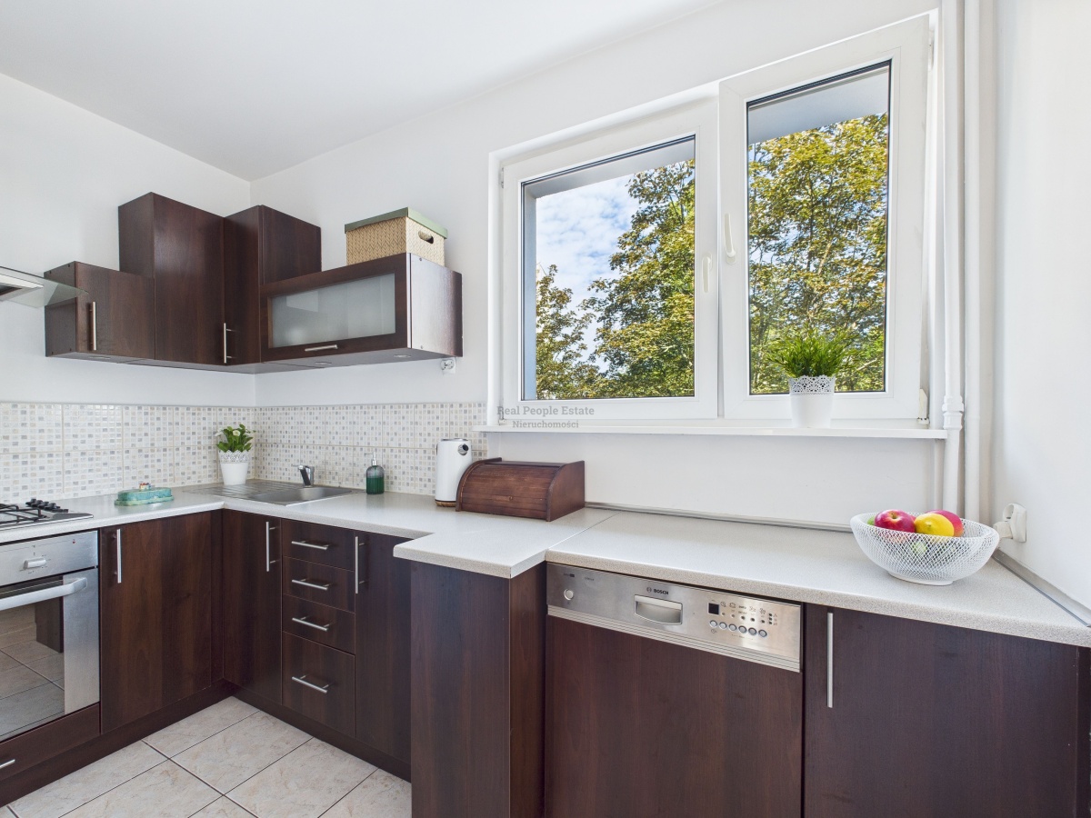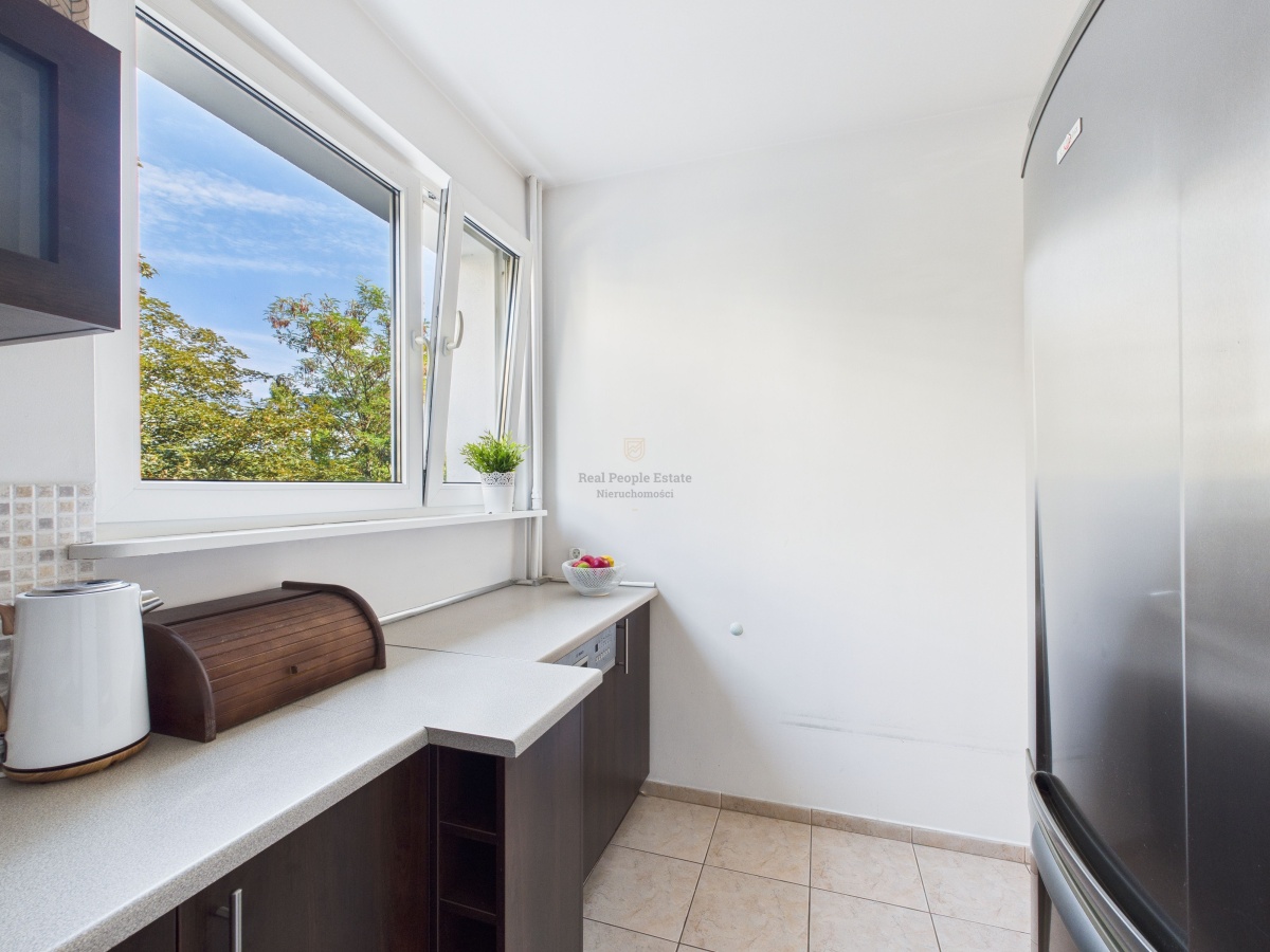 Mieszkanie znajduje się na 2. piętrze w zadbanym, 4-piętrowym budynku z lat 70. Klatka schodowa jest świeżo po remoncie. Do lokalu przynależy piwnica, a dodatkowym atutem są: balkon francuski, okna PCV oraz drzwi antywłamaniowe Gerda.