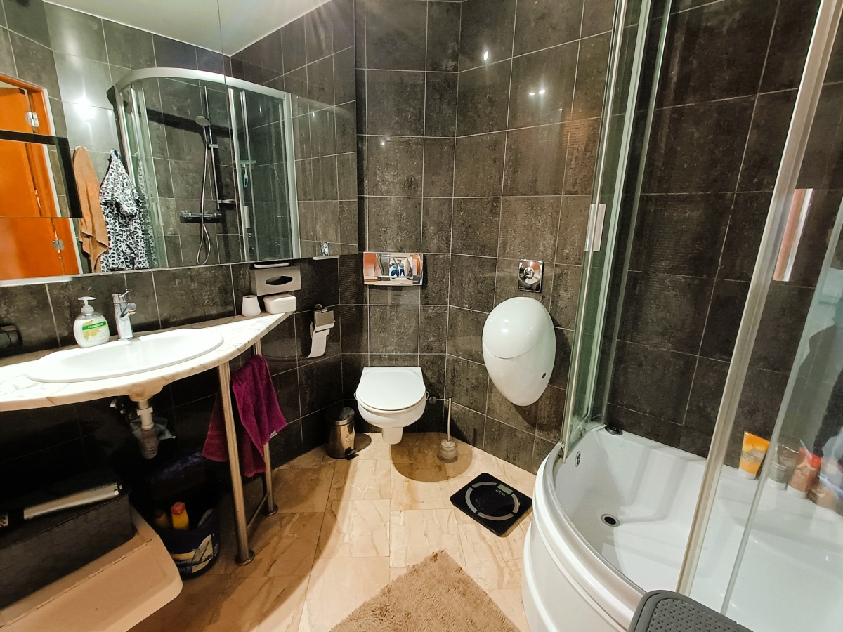 Budynek jest stosunkowo nowy (2001 rok) a dodatkowo właśnie został ukończony remont elewacji i balkonów. Mieszkanie mieści się na 4 piętrze czteropiętrowego budynku z windą. Wykończone jest w bardzo dobrym standardzie. Na podłodze w salonie i w kuchni jest położony marmur, materiał charakteryzujący się niezwykłą trwałością, odpornością na zarysowania a także ogromną łatwością w utrzymaniu w czystości. Dodatkowo kamień na takiej powierzchni w okresie szczególnie letnim, gorącym znakomicie oddaje swój chłód co sprawia, że zainstalowana (wymieniona 3 lata temu na nową firmy GREE) klimatyzacja jest praktycznie nie używana.