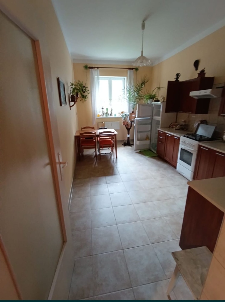 Kuchnię można przenieść do przedpokoju, który jest duży, w ten sposób będą dwa spore pokoje na 45mkw.