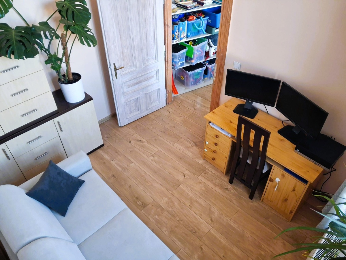 Do lokalu przynależy 8m2 piwnica oraz komórka lokatorska o powierzchni 4,3m2. Całkowita powierzchnia nieruchomości podlegającej sprzedaży wynosi 93,97m2. Dodatkowo jest dostępna do użytku wydzielona strefa strychu o powierzchni około 25m2. Miejsce parkingowe na ogólnodostępnym parkingu lub na wspólnym terenie posesji.