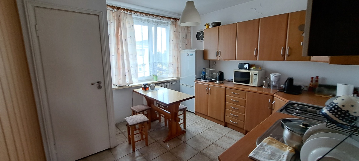 Mieszkanie zadbane, jasne, przestronne, rozkładowe, bardzo miłe, cały czas zamieszkiwane, sprzedawane razem (w cenie) z piwnicą, garażem i działką (5 arów).