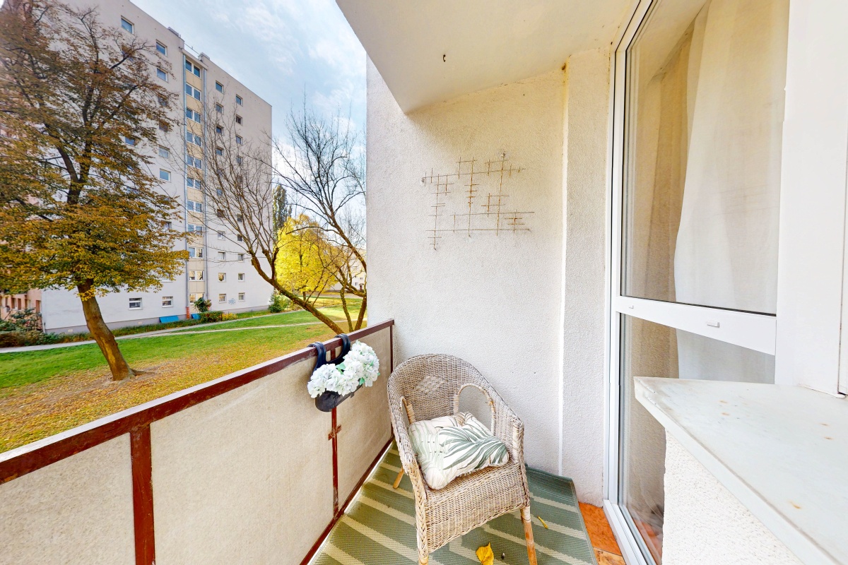 Układ: ustawny salon (15m2), sypialnia (9m2) z wygodną loggią, pokój (10m2), kuchnia (5m2), łazienka (3m2) oraz przedpokój (4m2). Do mieszkania przynależy piwnica. Mieszkanie dwustronne (północ-południe), jasne, oddalone od ulicy.
