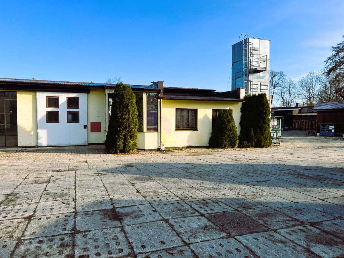 – główny budynek produkcyjny o pow. ok. 1200 m², pozostałe budynki magazynowo-biurowe o pow. ok. 800 m², wiaty blaszane o pow. ok. 200 m²;