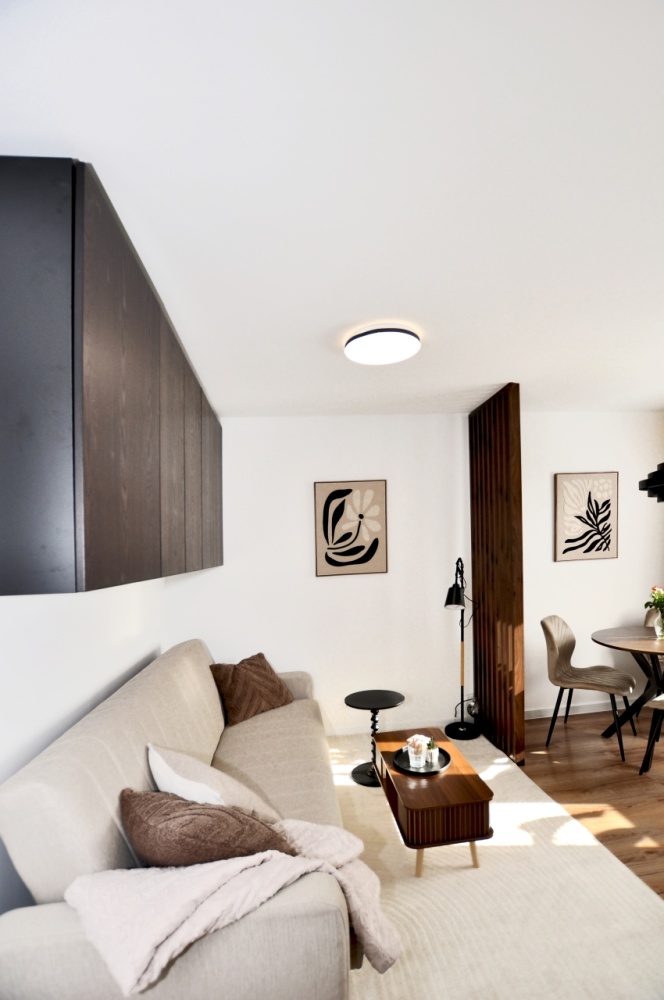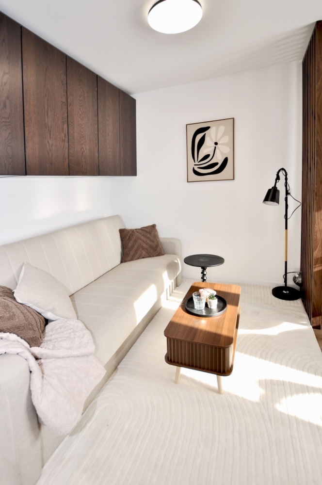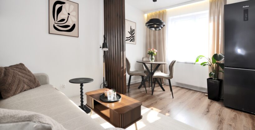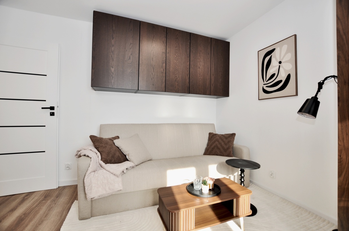 Dużym atutem jest również sam standard przygotowania mieszkania. Układ instalacji został zaprojektowany przez architekta, wnętrze dopracowała projektantka, a końcowy efekt został przygotowany z dbałością o estetykę i spójność całej przestrzeni. Dzięki temu mieszkanie prezentuje się bardzo nowocześnie, elegancko i ponadprzeciętnie dobrze — co widać od pierwszego wejścia.