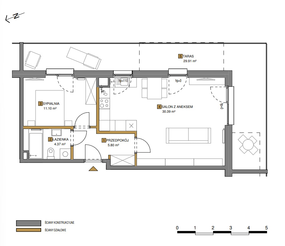 Do lokalu przynależy balkon o powierzchni 29,91 m2