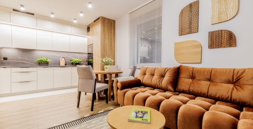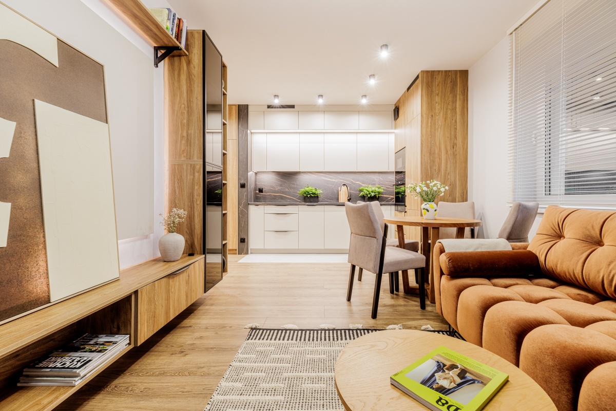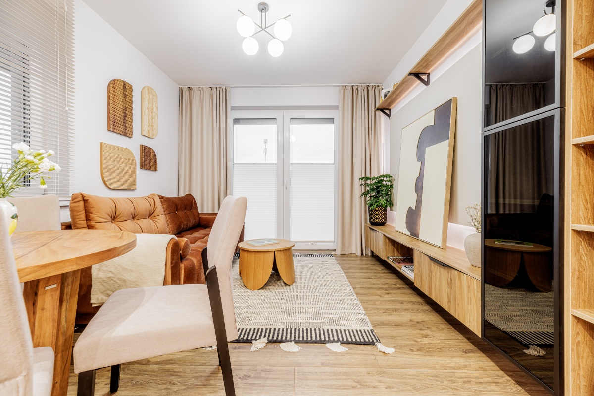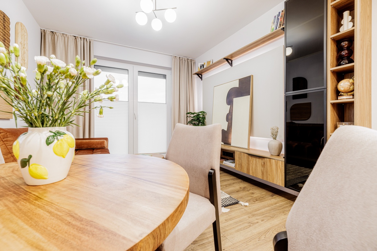 Wysokiej jakości materiały. Wszystkie meble widoczne na zdjęciu są w cenie mieszkania.