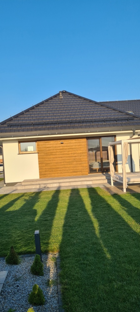 Ogrzewanie podłogowe, energooszczędna pompa ciepła oraz fotowoltaika na dachu 10 kw, co pozwala na znaczną oszczędność kosztów eksploatacyjnych.