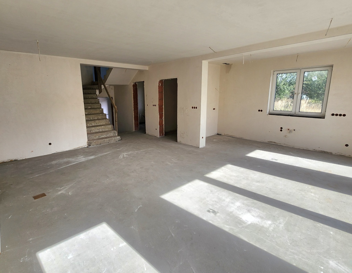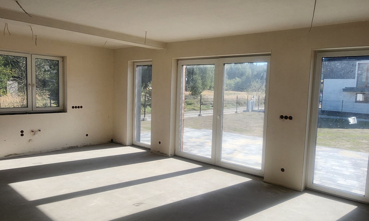 Dom wyróżnia się bardzo słonecznym salonem oraz dużym, wybrukowanym tarasem, idealnym do wypoczynku. Lokalizacja zapewnia ciszę i kontakt z naturą, jednocześnie oferując pełną infrastrukturę w pobliżu.