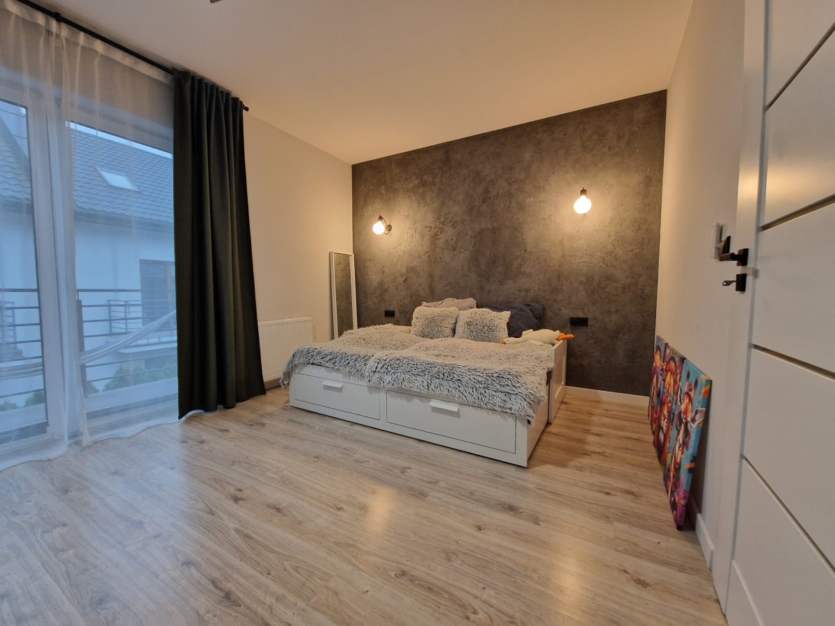 • Główna sypialnia: duży balkon i garderoba; beton architektoniczny
