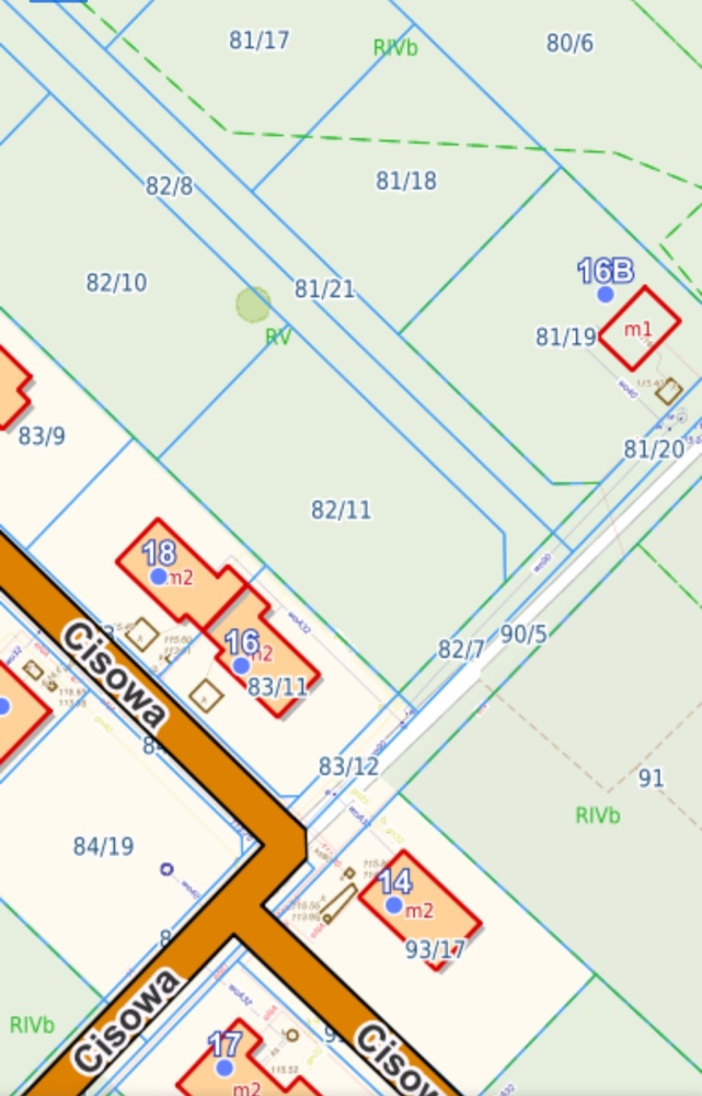 -od dłuższego boku działki, z drogi prywatnej szerokości 10m, która łączy ul. Cisową z ul. Rosy (wraz z działką nowemu właścicielowi zostanie przekazany udział w tej drodze)