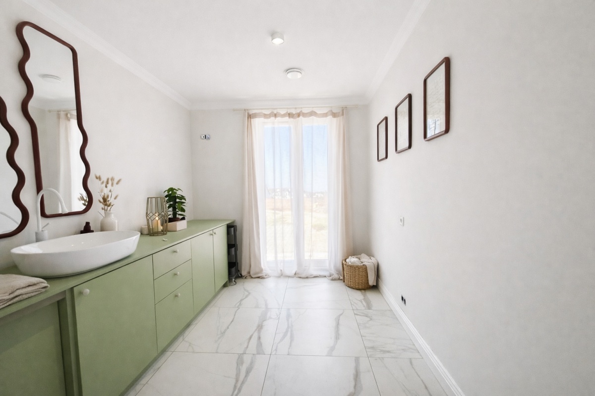 PIĘTRO: na piętrze znajdują się dwie sypialnie oraz imponujący master bedroom z prywatną garderobą/gabinetem. Dodatkowo znajduje się tu przestronna garderoba lub schowek oraz pralnia.