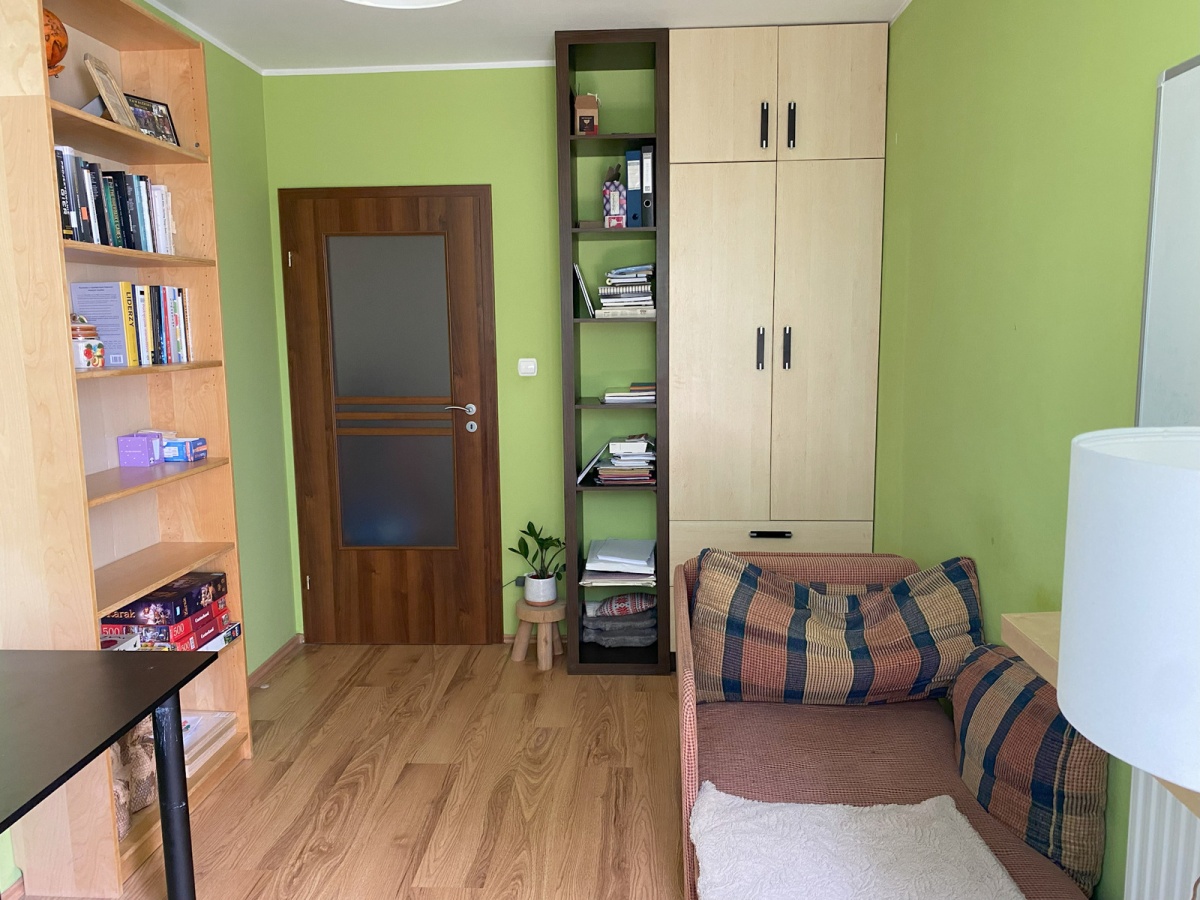 W skład mieszkania wchodzą trzy ustawne pokoje, salon z aneksem kuchennym, dwie łazienki, pomieszczenie gospodarcze oraz dwa balkony z pięknym widokiem na ogród i drzewa. Mieszkanie jest w pełni umeblowane i gotowe do zamieszkania – wyposażone w zmywarkę, lodówkę, kuchenkę, piekarnik i pralkę. Lokal oferuje bardzo dużo miejsca do przechowywania – w każdym pomieszczeniu znajdują się pojemne szafy, regały lub komody. Mieszkanie jest doskonałą alternatywą dla domu w zabudowie szeregowej.