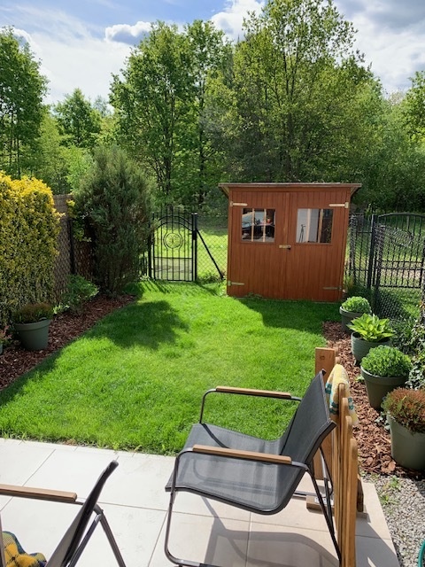 Całości dopełnia ładnie zagospodarowany ogródek wraz z domkiem narzędziowym.