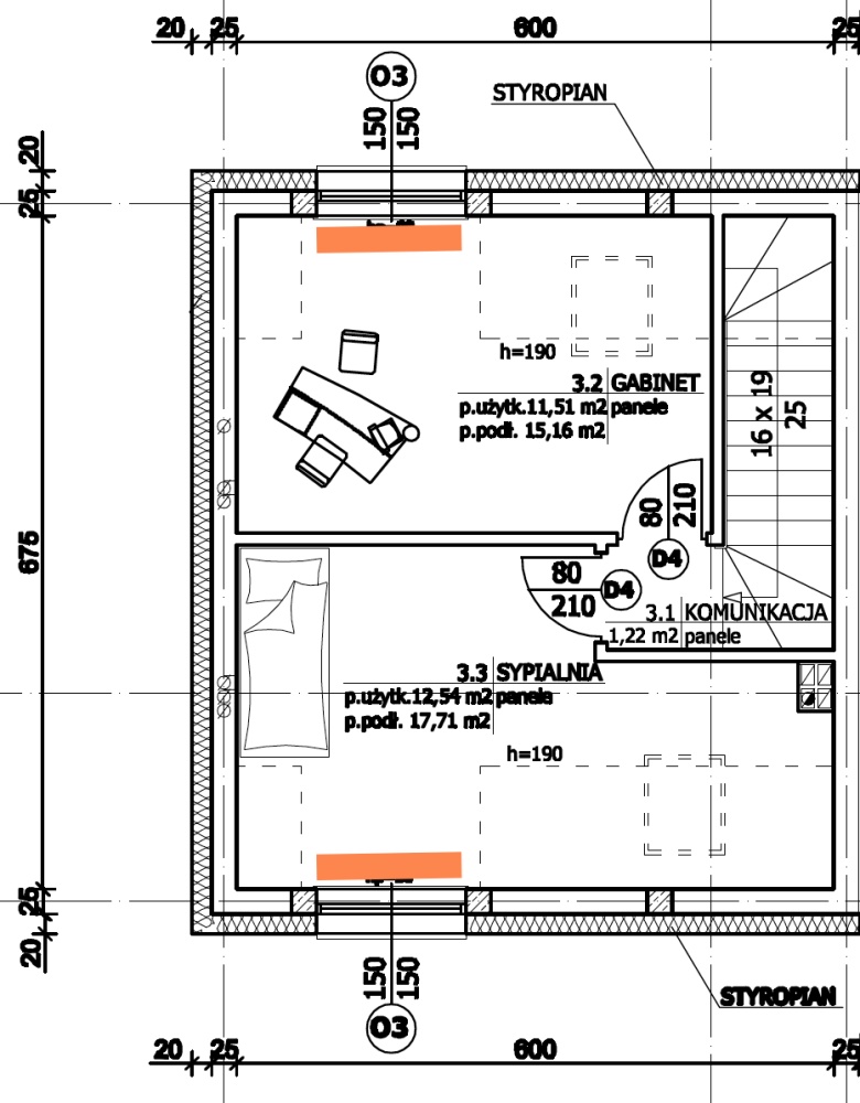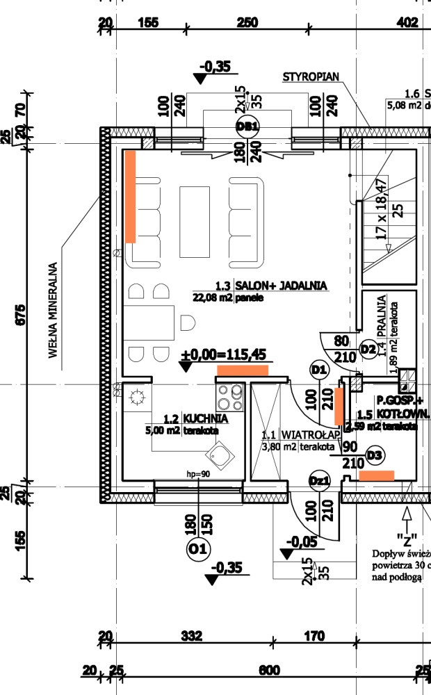 Dom został wybudowany w technologii tradycyjnej z solidnych materiałów: