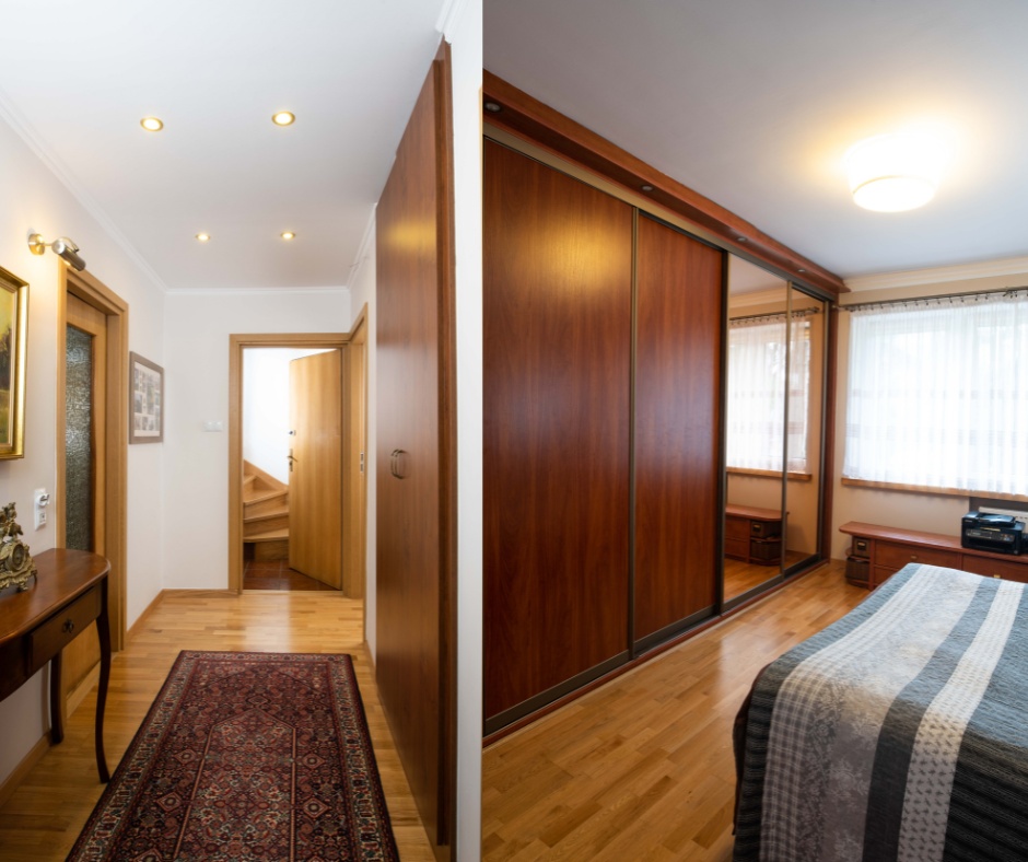 Dom umeblowany (dużo szaf), znajdą też w nim Państwo wszelaki potrzebny sprzęt – zmywarkę, lodówkę i pralkę. Wynajmując mieszkanie, mogą otrzymać Państwo również do użytku dostęp do garażu (do ustalenia). Dom jest ogrzewany gazowe.