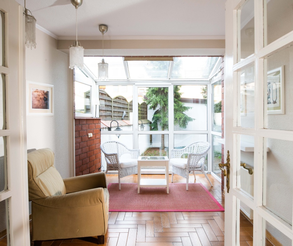 Dom słoneczny, z dużą ilością okien.