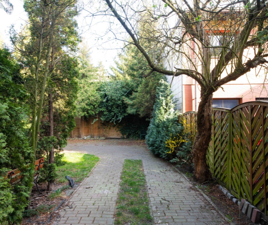 2 oddzielne bramy elektryczne, za którymi znajdują się 3 miejsca parkingowe oraz zielony ogródek. Wielkość całej działki to 714m2.