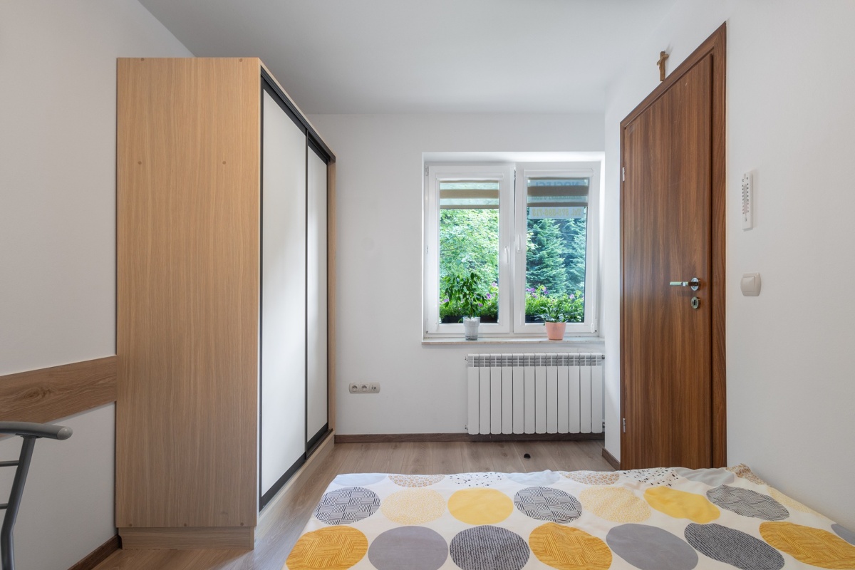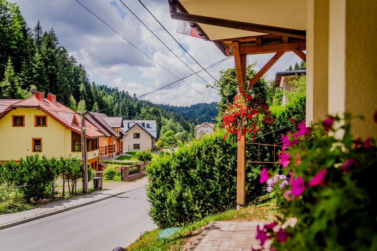 Nieruchomość usytuowana jest w pięknej okolicy otoczonej dookoła lasem, zaledwie 1800m od centrum.