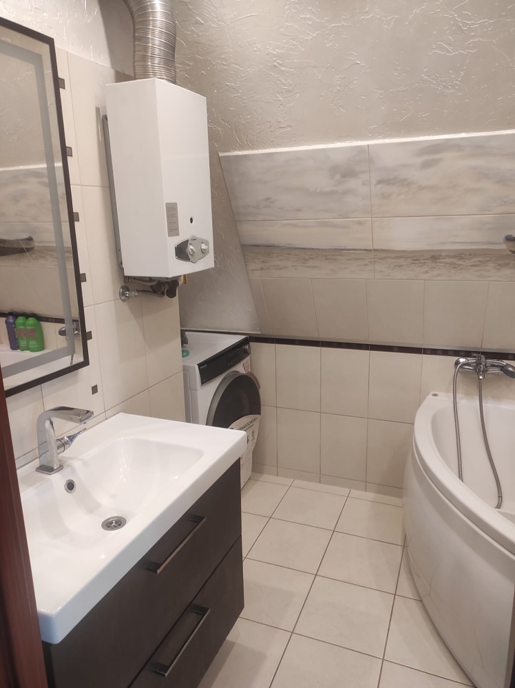 Powierzchnia mieszkania to 70,9 m2 (w tzw. „świetle”), po powierzchni – ponad 94,5 m2, z czego 50/54 m2 znajduje się na pierwszym poziomie, pozostałe 20,9/40,2 m2 – na poddaszu. Do mieszkania dodatkowo przynależy piwnica o pow. 3,3 m2.