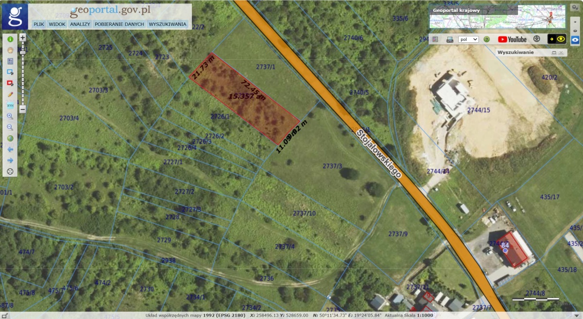 Sprzedam działkę budowlaną nr 2737/2 położoną w Górach Luszowskich (Luszowice), powiecie chrzanowskim. Działka położona jest w cichej, spokojnej okolicy na terenach zielonych. Działka ma kształt prostokąta o wymiarach ~ 22x71m. Powierzchnia działki wynosi 1569 m2. Dla działki zostały wydane w lipcu 2025 r. warunki zabudowy na budowę budynku mieszkalnego jednorodzinnego z garażem do dwóch stanowisk wraz z infrastrukturą techniczną oraz urządzeniami budowlanymi do obsługi budynku. Ponadto wydane warunki na przyłączenie i dostawę energii elektrycznej oraz warunki przyłączenia do sieci wodociągowej (~100 m). Dojazd do działki odbywa się drogą powiatową – ul. Stojałowskiego oraz służebnością drogową przejazdu, przechodu i przeprowadzenia mediów po działce gruntu 2737/1. Wydana decyzja o wyrażeniu zgody na lokalizację zjazdu z drogi powiatowej. Autostrada A4 (wyjazd/zjazd kierunek Katowice-Kraków) oraz centrum Chrzanowa znajdują się w odległości ~ 3 km od działki. Cena do niewielkiej negocjacji. Osoby zainteresowane proszę o kontakt telefoniczny po godz. 16.