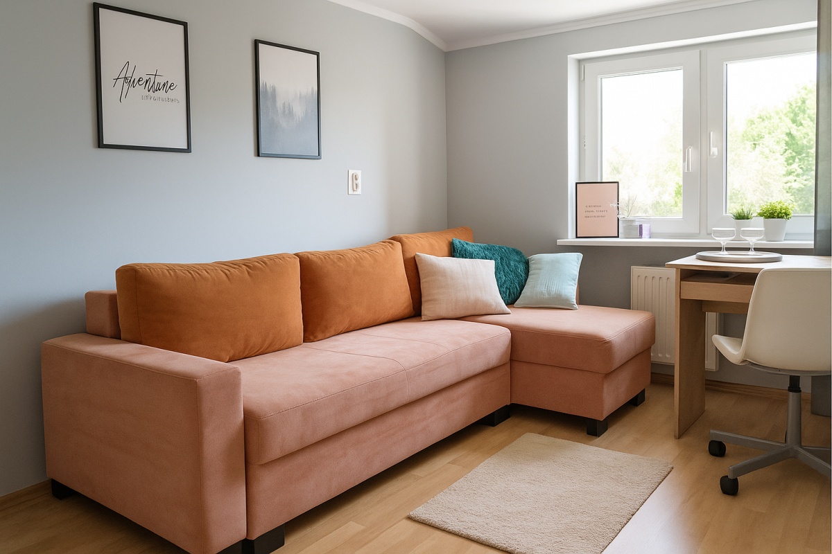 Mieszkanie ma 55,55m2, 3 niezależne pokoje, spora łazienka, część wspólna (kuchnia).