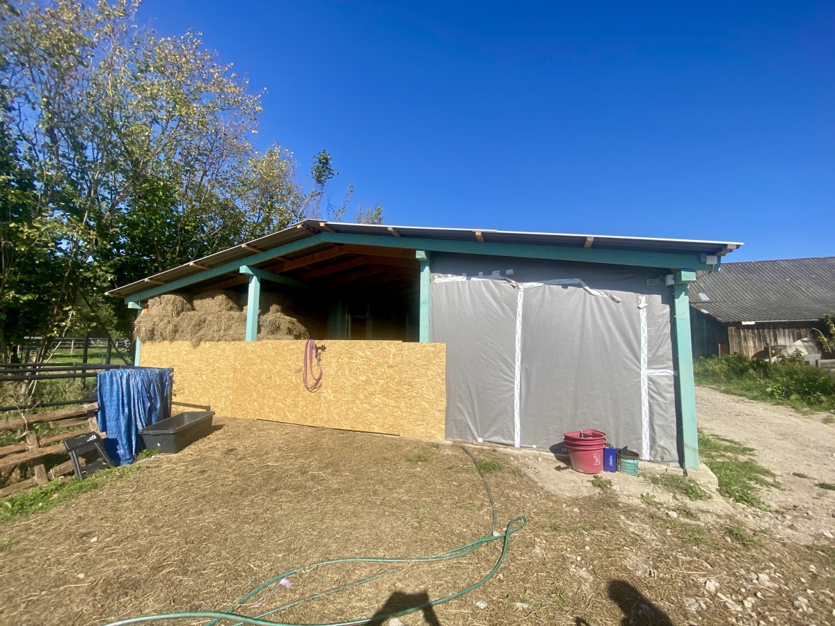 Zagrodzone padoki z wiatami (1 wiata 5×8 m oraz 2 wiaty 3×5 m)