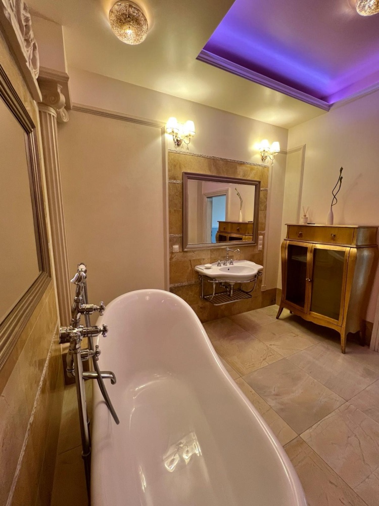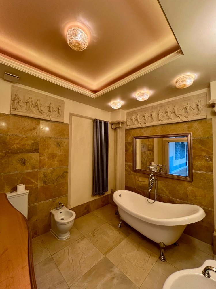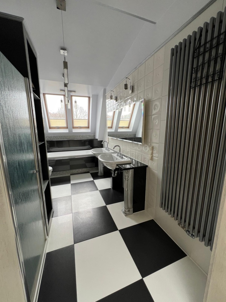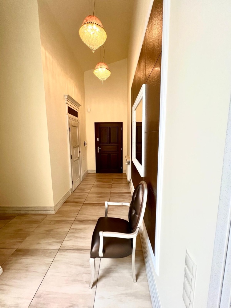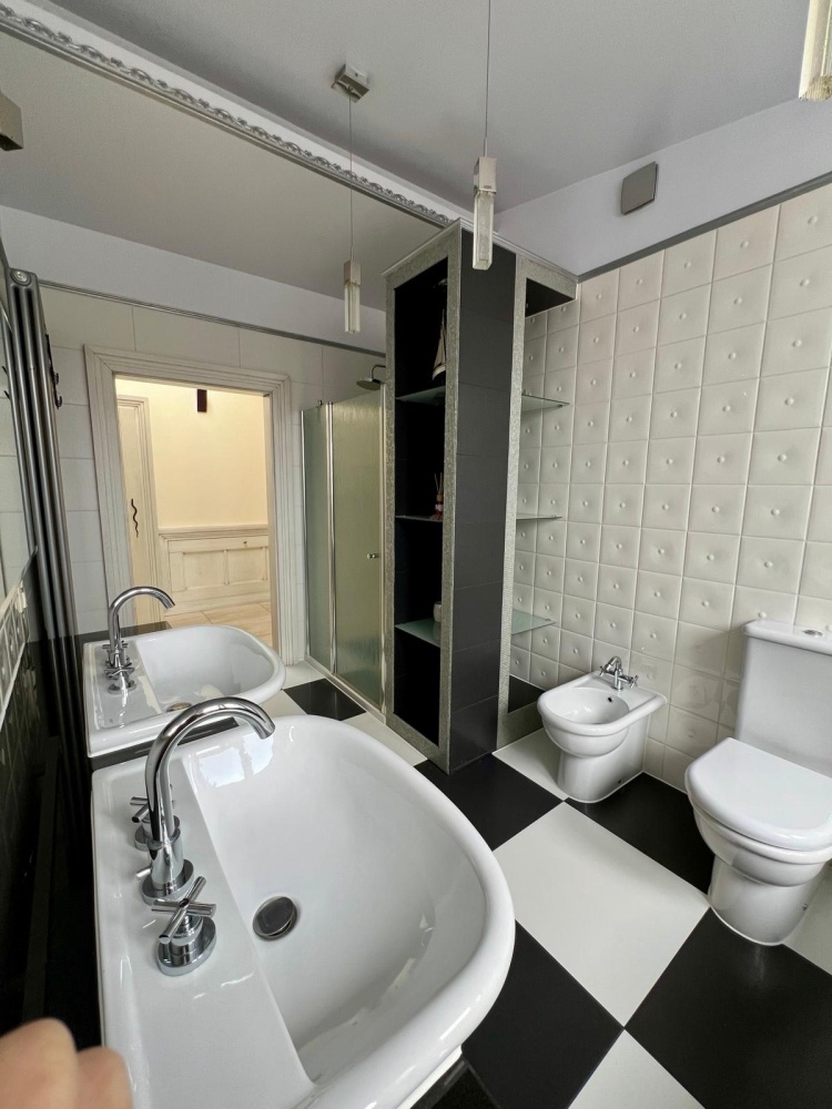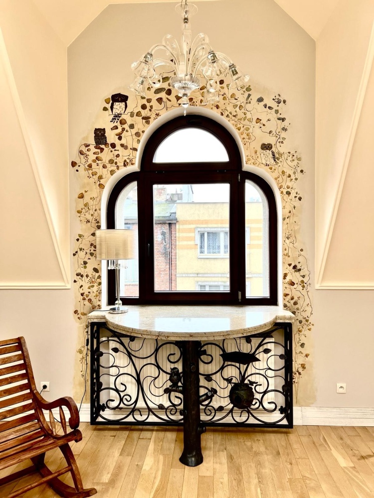 2. APARTAMENT: projekt został wykonany przez wiodącego częstochowskiego architekta (rzut w załączeniu) i w 2012r. został zrealizowany z zastosowaniem najwyższej jakości materiałów oraz wyposażony w profesjonalny sprzęt. Na powierzchnię 201,07m2 składają się: HOL + Garderoba, SALON, przestronna JADALNIA z aneksem kuchennym i balkonem, ŁAZIENKA (kafle REVES de REX), pokój/gabinet/Sypialnia1, Pokój/Gabinet/SYPIALNIA2 z GARDEROBĄ, POKÓJ/Gabinet/SYPIALNIA3 z GARDEROBĄ oraz ŁAZIENKĄ (Marmur) i biblioteką (możliwość wydzielenia dwóch pomieszczeń), PRALNIA. Jak widać na załączonych zdjęciach ponadczasowa stylistyka przetrwała próbę czasu i daje gwarancję utrzymania wartości w przyszłości. DRZWI I STOLARKA zostały wykonane z drewna w jednym z najlepszych zakładów stolarskich. PODŁOGI: kafle (hol, jadalnia, komunikacja), parkiet dębowy (pokoje, salon). ŚCIANY: profesjonalne gładzie i dekory gipsowe (100% odnowione i pomalowane w 2025r.), stiuk wenecki, belgijskie tapety jedwabne; fototapeta, ręcznie wykonane dekoracje artystyczne, żyrandole MURANO + oświetlenie wg projektu; dwie ŁAZIENKI: marmurowa oraz kaflowa, dwie wanny, prysznic (najwyższej jakości armatura GLOBO, TRES, Roca, KLUDI); ZABUDOWA KUCHENNA: zrealizowana przez wiodący warsztat stolarski, fronty i obudowy z litego drewna szczotkowanego, z wysokiej klasy sprzętem AGD: zmywarka, lodówka, płyta indukcyjna, piekarnik, mikrofala SIEMENS+zabudowana krajalnica i toster RITTER); MEDIA: centralne ogrzewanie (miejskie opłaty zawarte w czynszu), ciepła woda (dwa energooszczędne bojlery elektryczne), Klimatyzacja (2 szt. jadalnia i sypialnia), energia elektryczna, Internet i TV, Monitoring kamienicy, własna instalacja alarmowa, domofon.