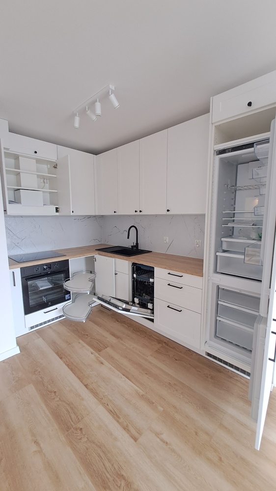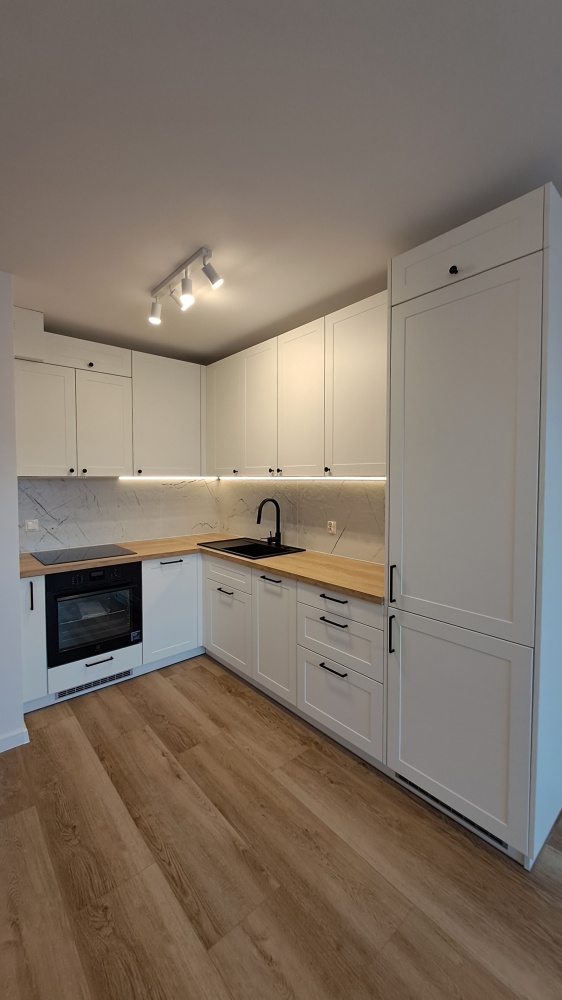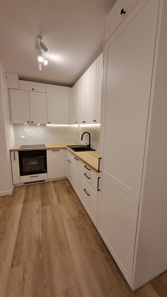 Kuchnia wyposażona jest w nowe meble i sprzęt AGD: