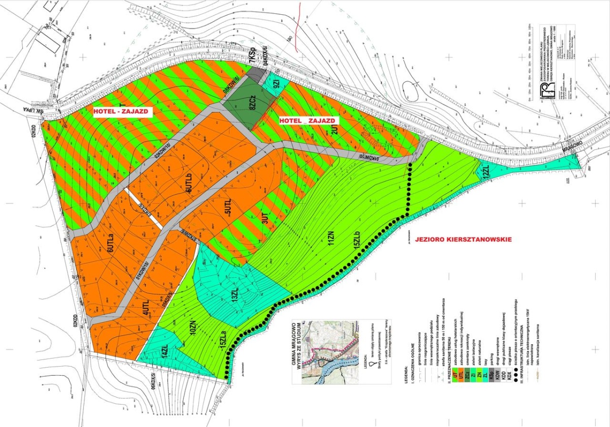 Dla całego terenu opracowany i uchwalony został Miejscowy Plan Zagospodarowania Przestrzennego. Działka oznaczona w planie symbolem 1UT przeznaczona jest w nim na cele zabudowy turystycznej i została już geodezyjnie wydzielona. Oznacza to, że natychmiast po wykonaniu projektu można przystąpić do budowy hotelu, motelu, zajazdu, zespołu domków letniskowych, campingu lub pola namiotowego.