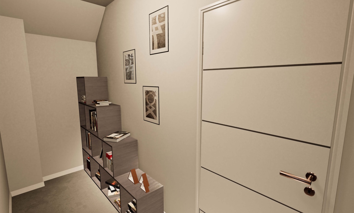 Duża garderoba z możliwością adaptacji na gabinet lub kolejną przytulną sypialnię.