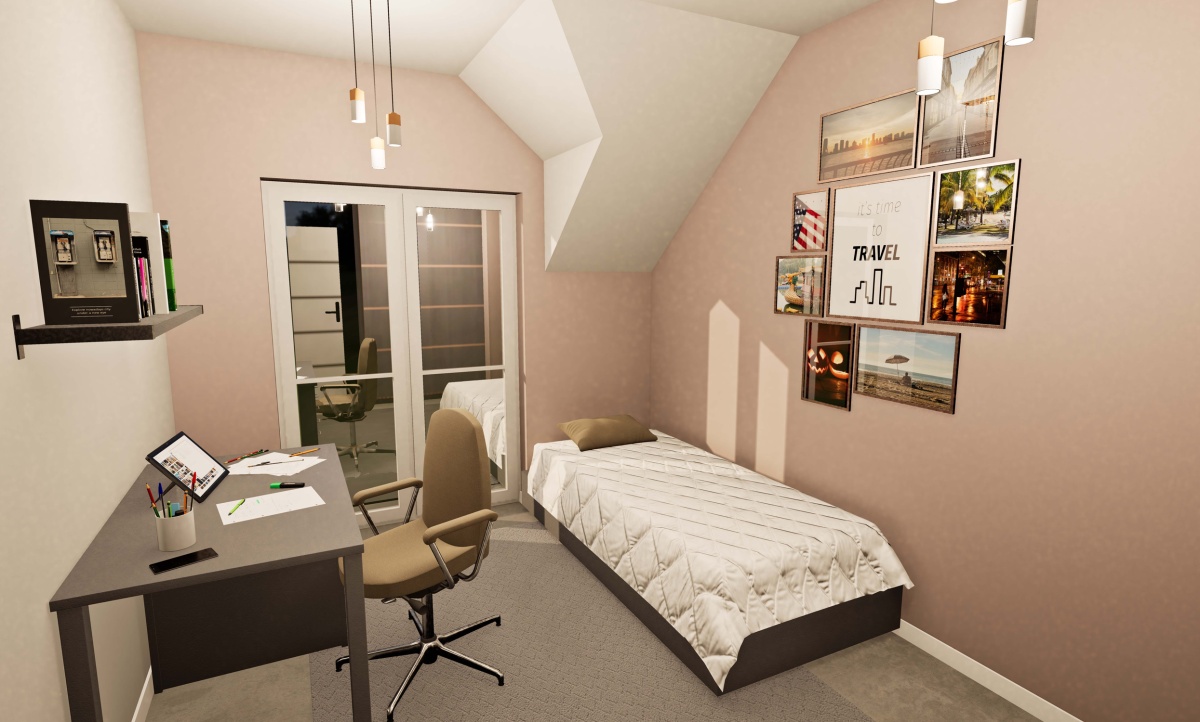3 sypialnie, w tym jedna na dole i dwie u góry,