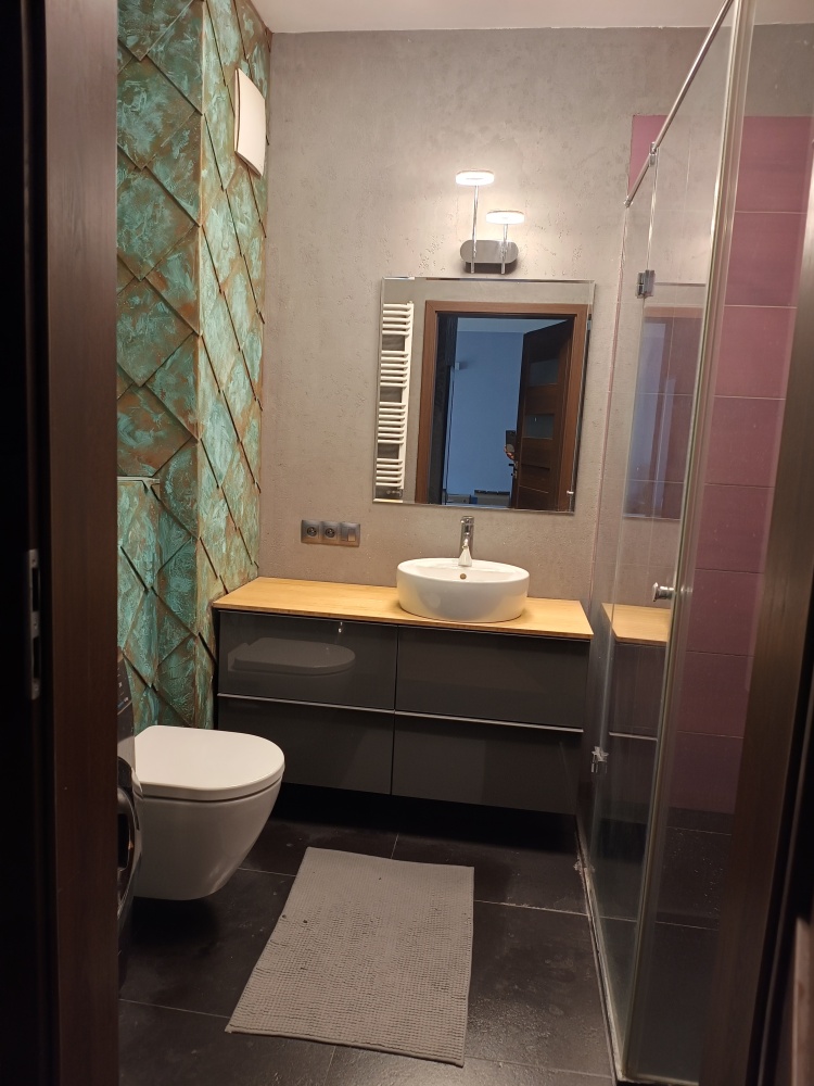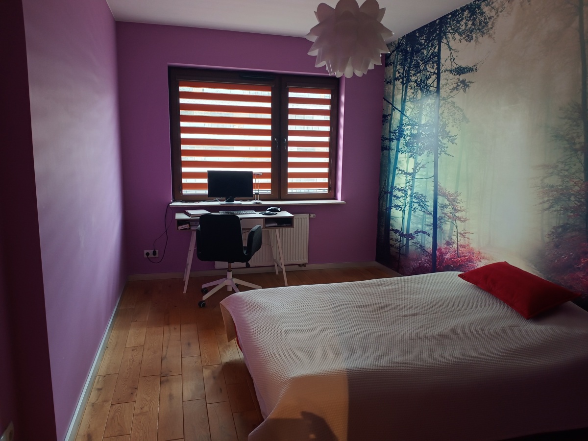 Wynajmę mieszkanie dwupokojowe 56 metrów ( salon z aneksem kuchennym z pełnym wyposażeniem) w nowoczesnym bloku na zamkniętym i monitorowanym osiedlu z ochroną fizyczną obok Promenady. Łazienka z prysznicem i z pralką, w korytarzu jest szafa w zabudowie. Duzy Bblkon z widokiem na zielone patio. Koszt wynajmu 3990zł plus opłaty miesięcznie ( czynsz, energia)