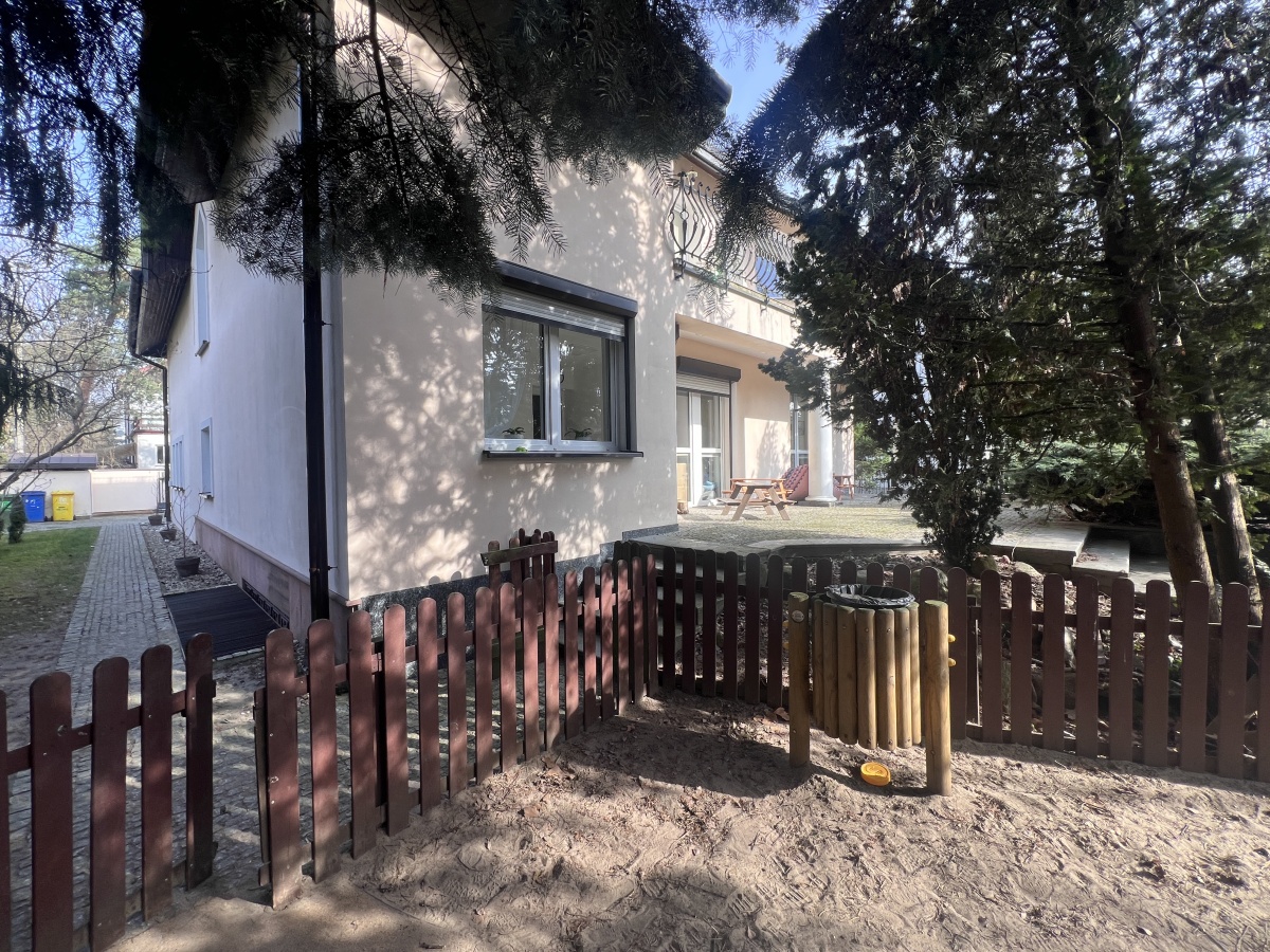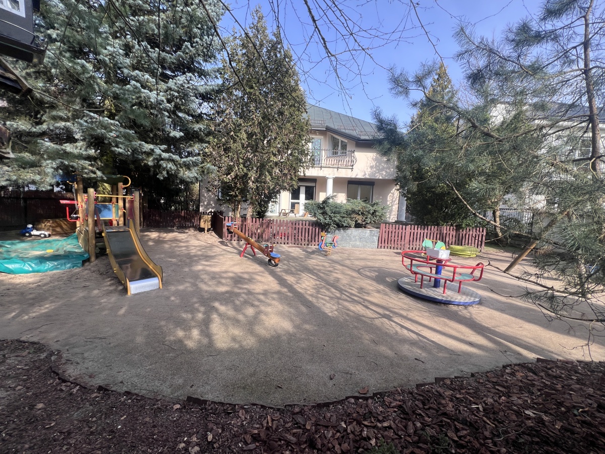 Dom o powierzchni 438 m² stoi na pięknej działce 940 m² z zagospodarowanym ogrodem i dużym, bezpiecznym placem zabaw – gotowym do korzystania przez dzieci. To miejsce, które łączy przestrzeń, spokój i prestiż lokalizacji.