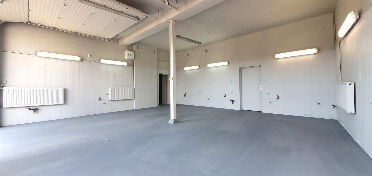 Parter – 160m2 trzy stanowiska z oddzielnymi wjazdami z możliwością powiększenia (likwidacja ściany działowej), salon – biuro ( klimatyzacja) z dużymi oknami antywłamaniowymi, WC z łazienką, pomieszczenie socjalne, mały magazynek, 400V, 230V, instalacja powietrzna. Wysokość pomieszczeń 330cm, Drzwi wjazdowe 300x300cm.